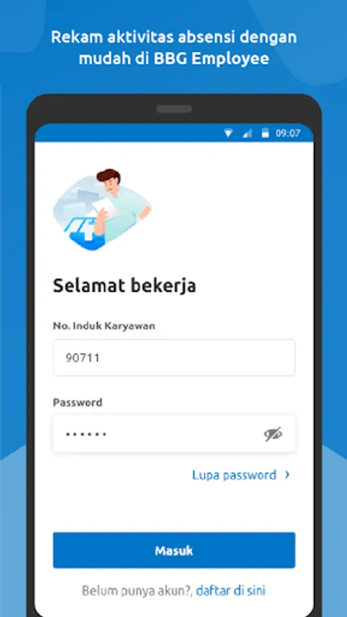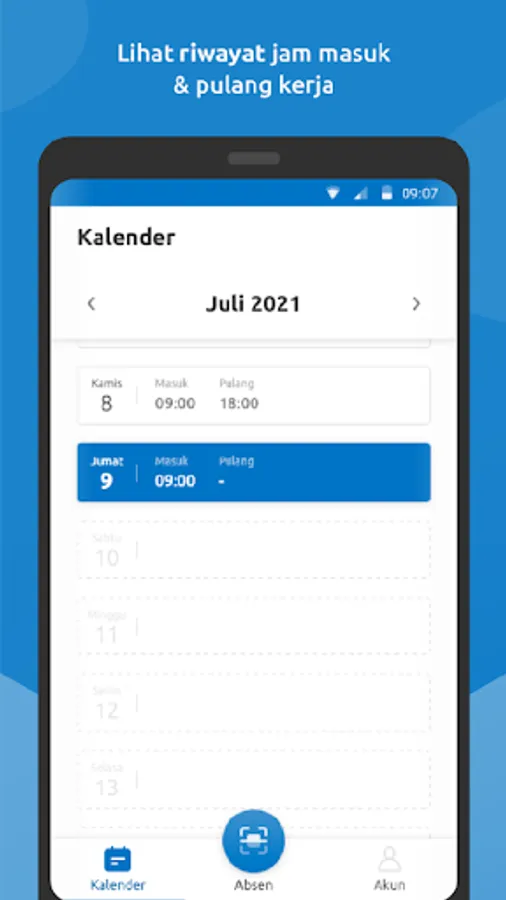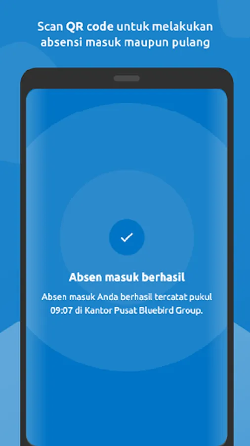Aplikasi absensi ini akan dirancang secara touchless menggunakan perangkat pribadi (ponsel) masing-masing karyawan sehingga proses absensi dapat dilakukan secara mandiri dan tentunya aman dilakukan selama masa pandemi Covid 19. Kelebihannya aplikasi absensi ini dapat dilakukan di semua wilayah kerja Bluebird (Kantor ataupun Pool).