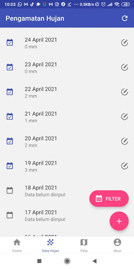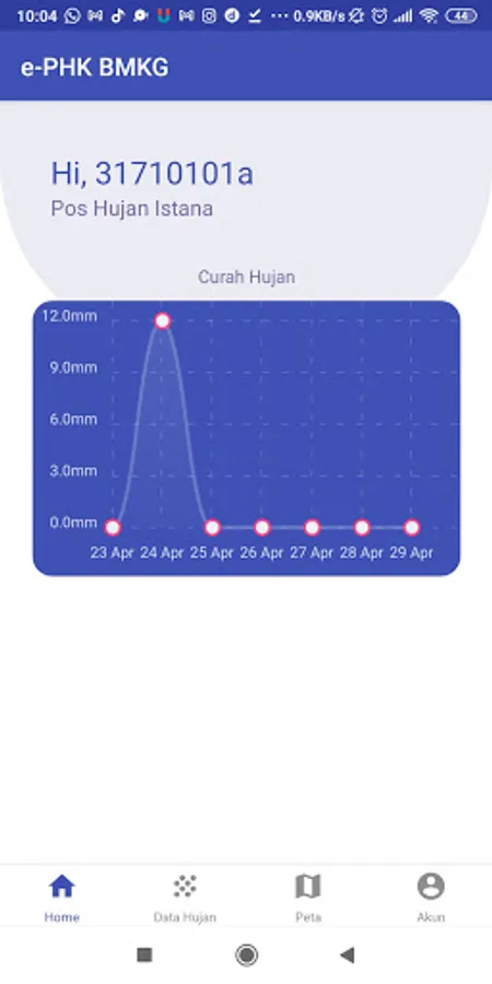 The BMKG ePHK (Cooperation Raining Post) application is an application that is intended to support the operational observation and recording of rainfall data for the cooperative rain post.