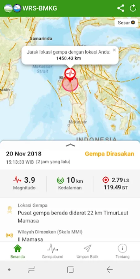 The WRS-BMKG application aims to disseminate information on earthquakes M ≥ 5.0, tsunamis, and earthquakes that occurred especially in the territory of Indonesia.