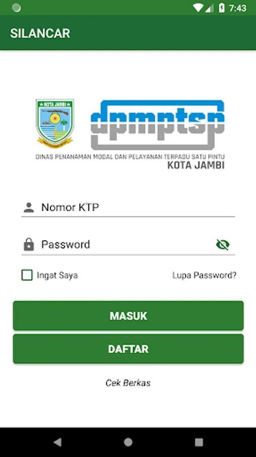 SILANCAR is the Jambi City One Stop Integrated Service Licensing Application.