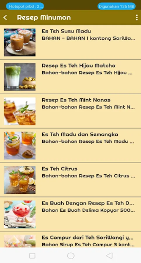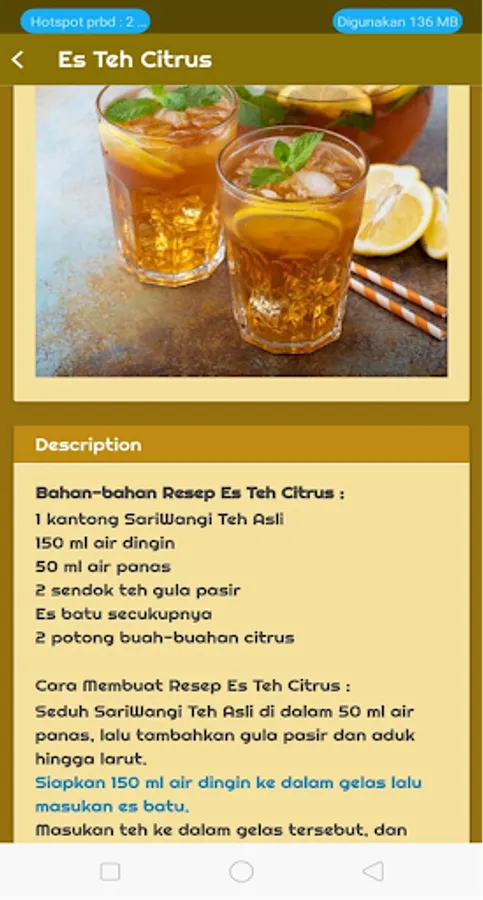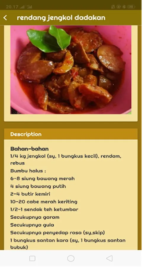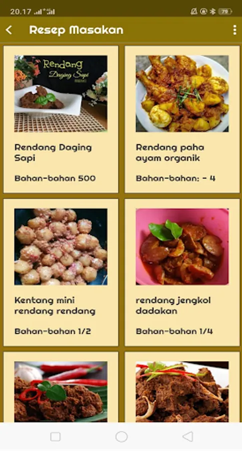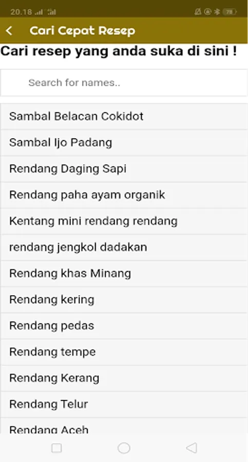 This application is about recipes on how to make complete foods and drinks including rendang, curry, chips and so on including cold and warm drink recipes
