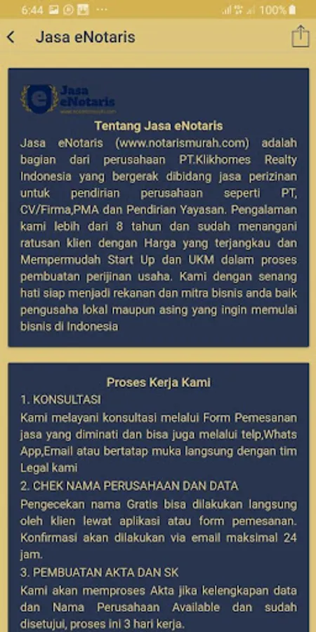 ENotaris Services (www.notarismurah.com) is part of the company PT.Klikhomes Realty Indonesia which is engaged in licensing services for the establishment of companies such as PT, CV / Firma, PMA and Foundation Establishment. Our experience is more than 8 years and has handled hundreds of clients at an affordable price and Facilitating Start Up and SMEs in the process of making business licenses. We are happy to be your partners and business partners both local and foreign entrepreneurs who want to start a business in Indonesia