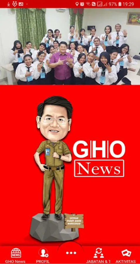 GHO News is an android-based application that is designed to collaborate with fellow Educators, Teachers and Trainers in Learning Activities both in class (classical) and outside the classroom (non-classical). GHO News is also used for participants of General Training (Pre-service or Latsar CPNS), Technical Training, Functional Training, Managerial Training and DPRD Orientation Activities. The features contained in GHO News, include: 1) info about GHO News, 2) Hironymus Ghodang profiles, 3) Education and Position Experience, 4) training activities, 4) e-Learning, 5) Testimonials of Training Participants, 6) Ghodang Akshi Youtube Channel, 7) Collaborative with Colleagues Educators, Teachers and Trainers, 8) Creativity and Innovation, and 9) Weather Conditions. GHO-News will always be developed according to the demands of the main tasks and functions as Educators, Teachers and Trainers.