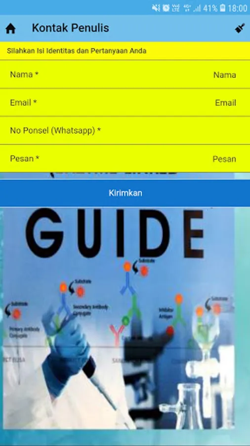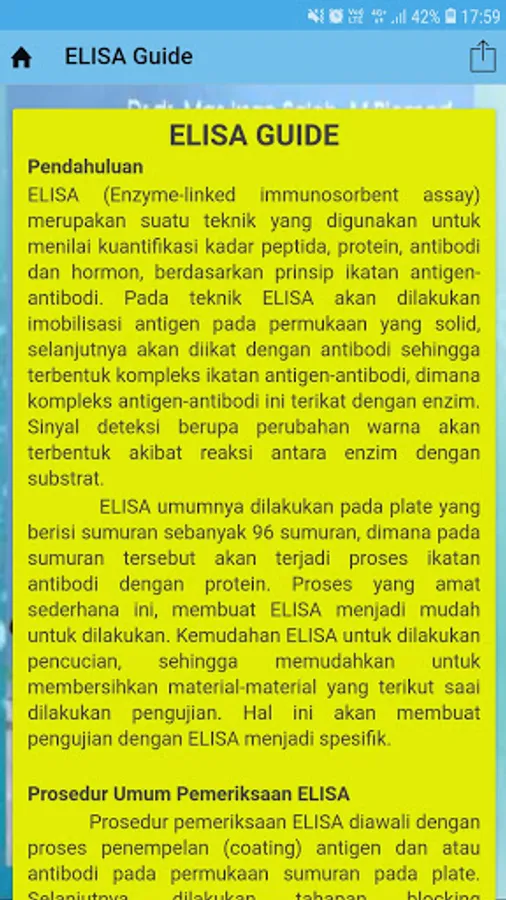 Application that contains a theoretical and practical ELISA examination guide. Menu available:
