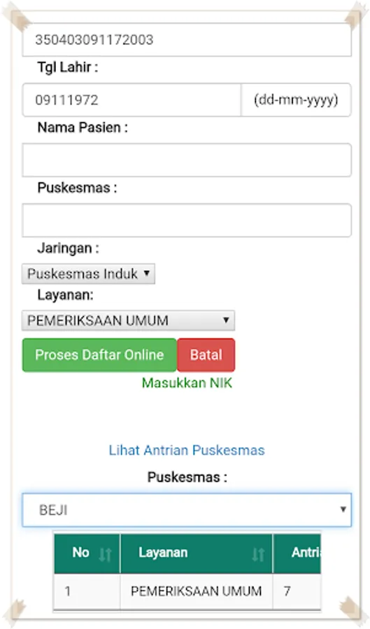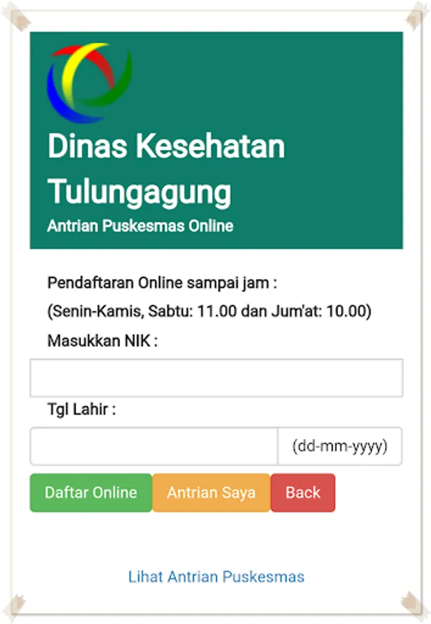 Sistem Pendaftaran Tanpa antrI oNline (SiPATIN). Aplikasi yang dapat digunakan untuk mendaftar secara online ke puskesmas di Kabupaten Tulungagung