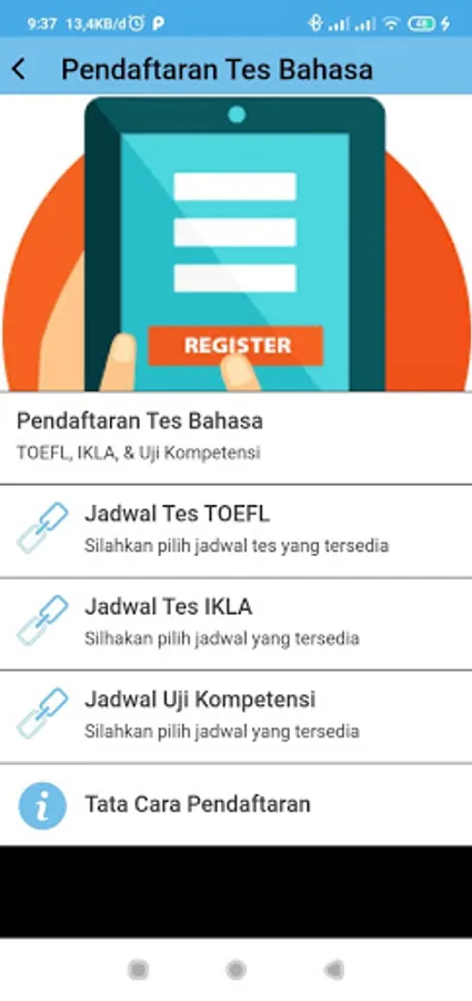 This application is specially made for the students of UIN Raden Intan Lampung. Students can see tests schedule and register themselves. This app also provide updated links for students to download their test certificates.