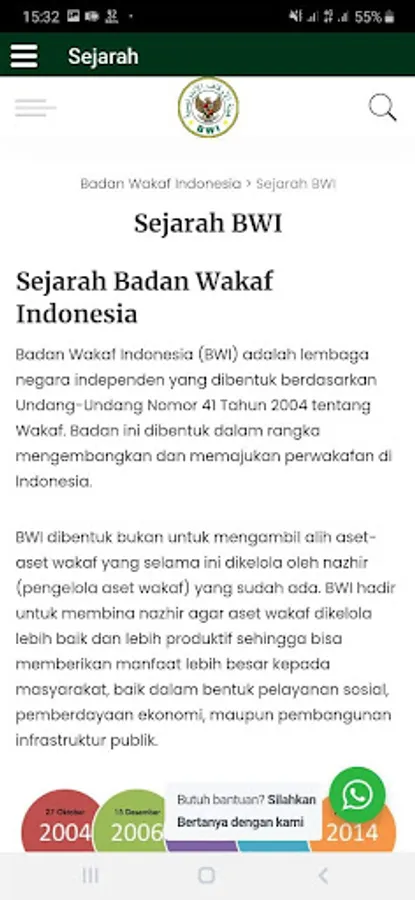 The Indonesian Waqf Board (BWI) is an independent state institution established based on Law Number 41 of 2004 concerning Waqf. This agency was formed in order to develop and advance waqf in Indonesia.