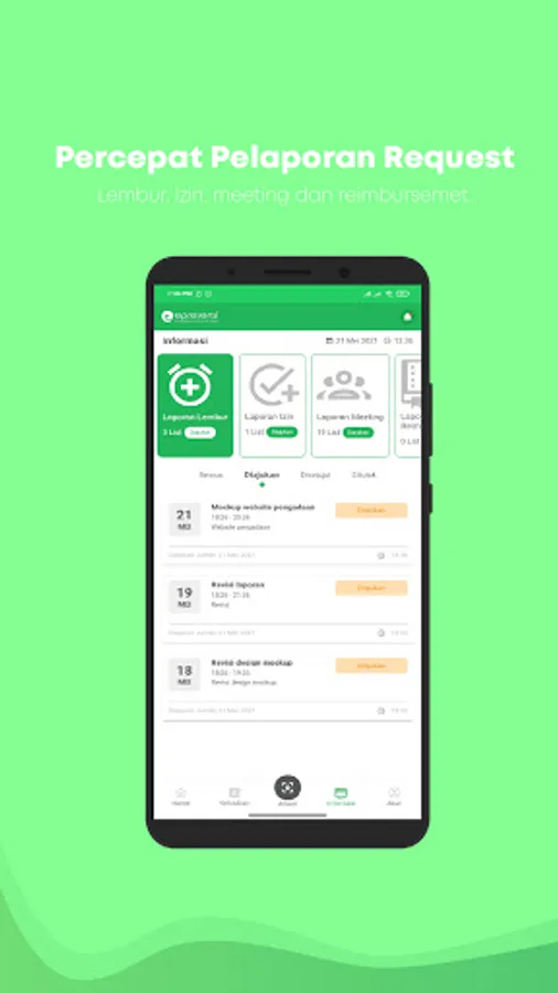 - Fitur geo-location, monitor di mana pegawai bekerja.