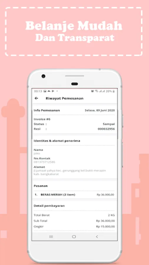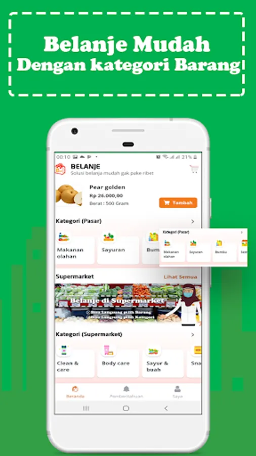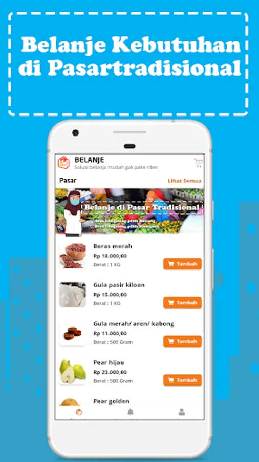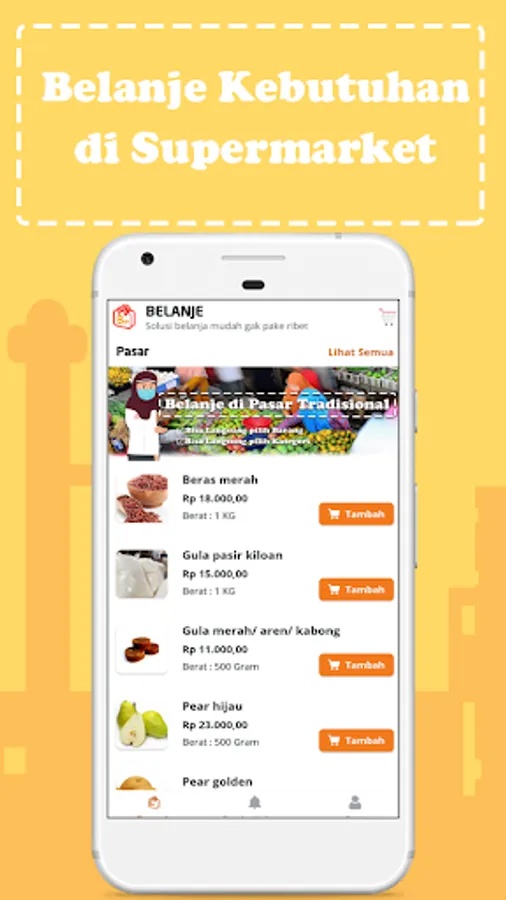 Choose goods, fruit, seasonings, basic food and whatever you want from the Belanje application, then order, confirm, the order is sent to your house!