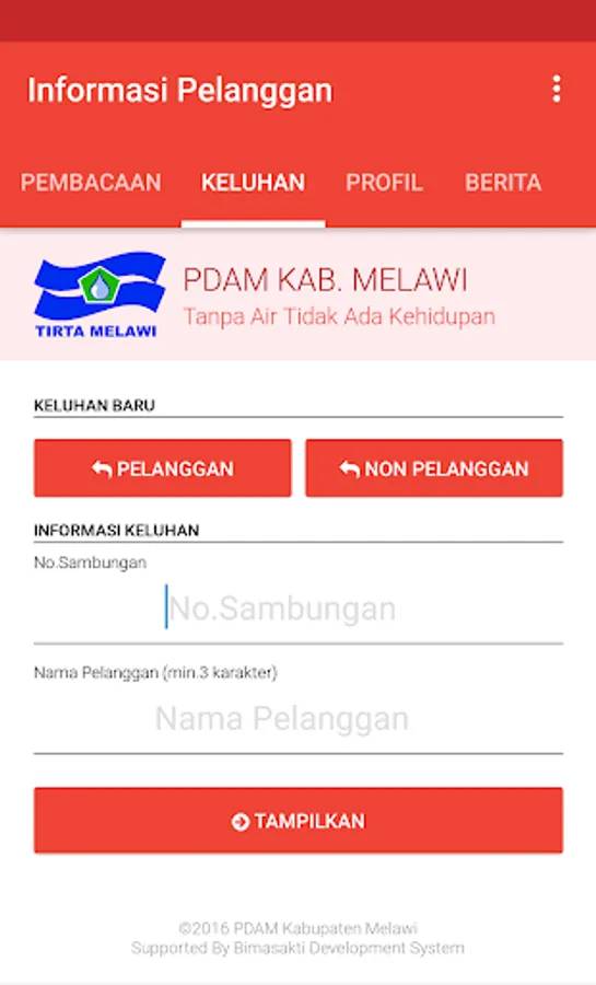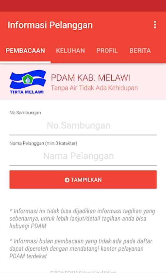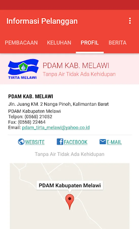Application that will allow customers PDAM Melawi in knowing the water billing information, and to find out other information with respect to the taps Melawi.