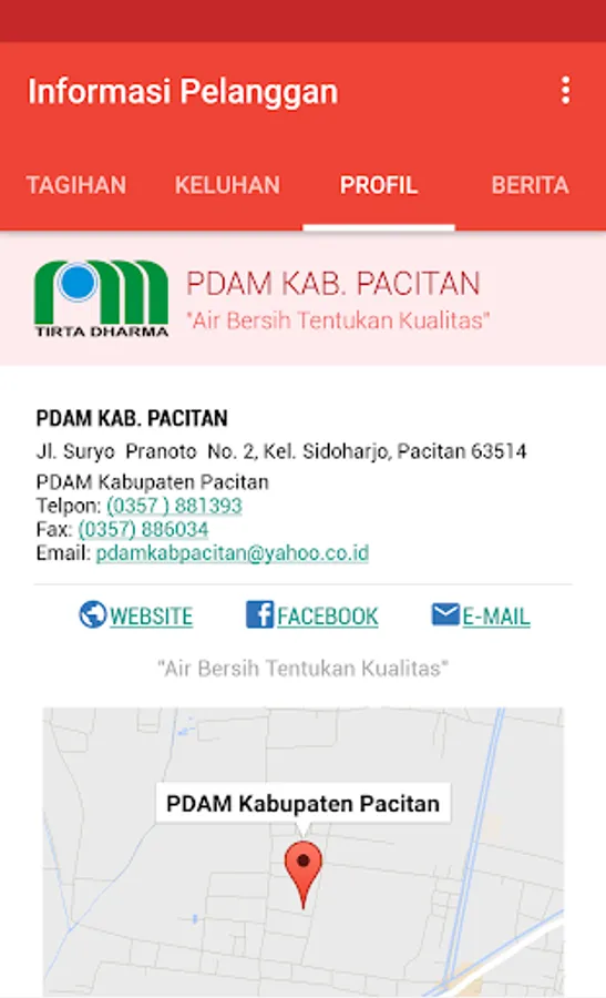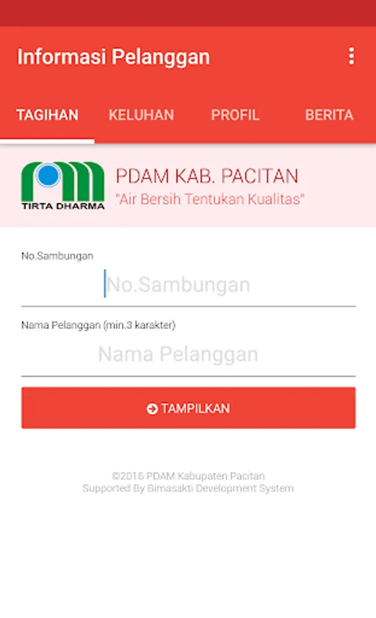 Application that will allow customers PDAM Pacitan in knowing the water billing information, and to find out other information with respect to the taps of Pacitan.