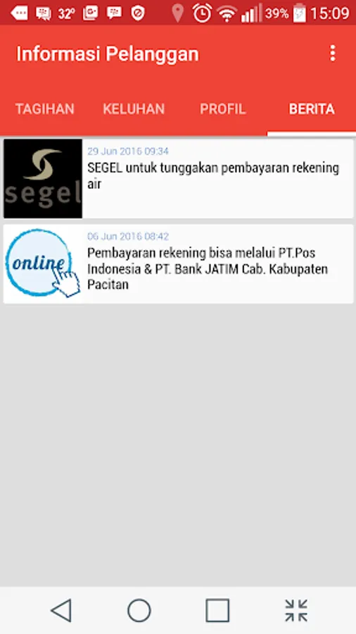 PDAM provides news and announcements directly via the app so customers can find out the latest news and announcements directly related taps Pacitan.