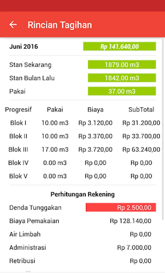 Featuring water bill in detail each month from subscribers. Simply by entering the customer number and name registered customers. The bill shows a charge that has not been paid and that has paid off each month.