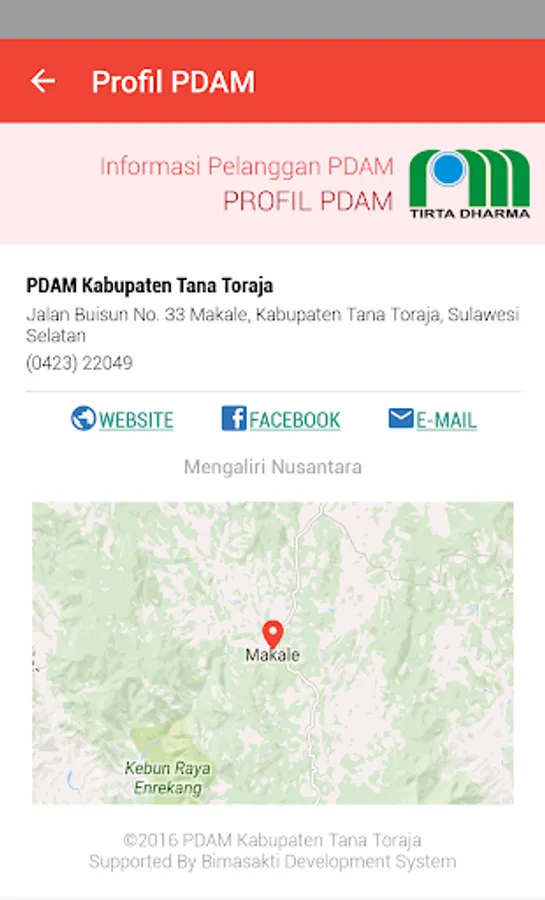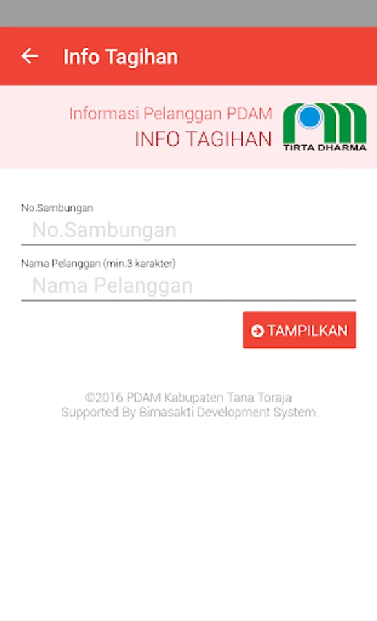 Application that will allow customers of PDAM Tana Toraja in knowing the water billing information, and to find out other information with respect to the taps of Tana Toraja.
