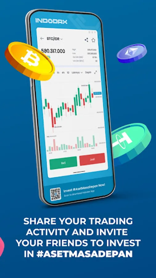 EFFICIENCY & SOCIAL SHARE, Deposits and withdrawals of crypto assets are now efficient and secure. Trade Bitcoin and other Crypto assets without worry. You can also easily share your Crypto trading experience at Indodax on social media applications.