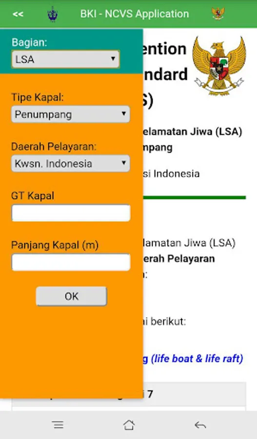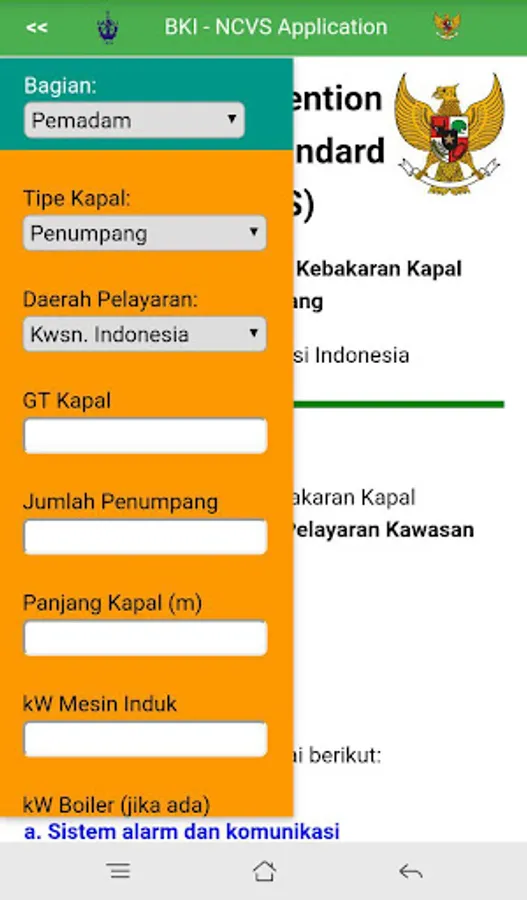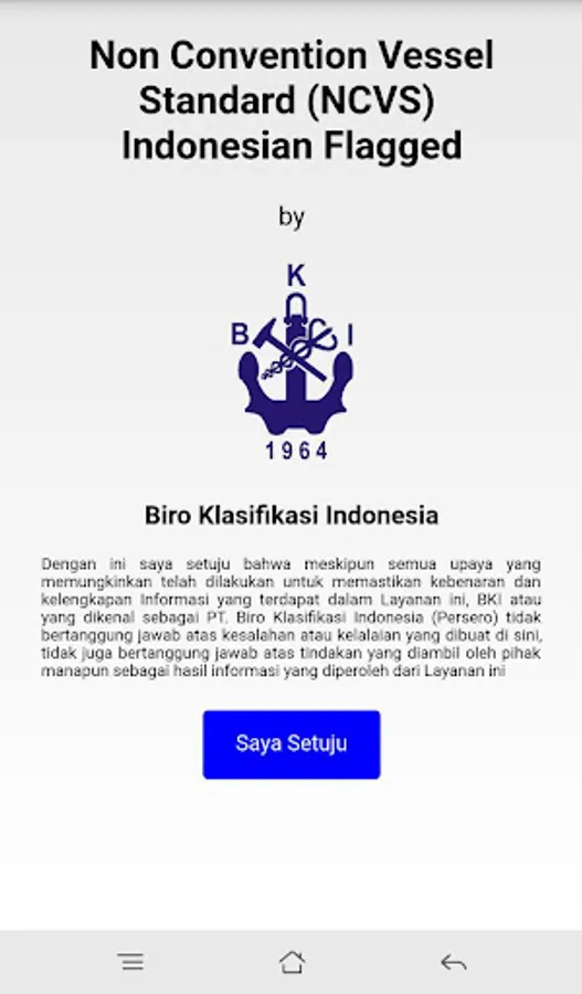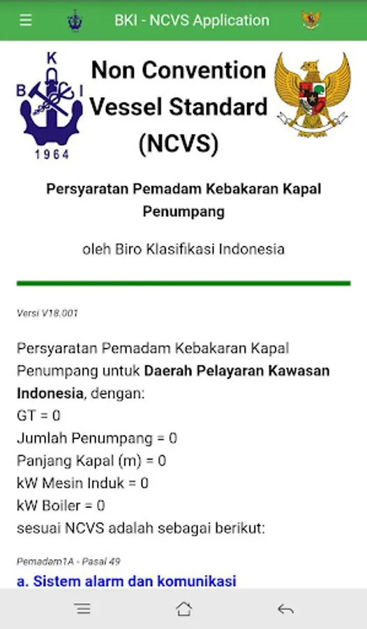 Kapal berbendera Indonesia yang tidak tunduk pada ketentuan Konvensi Internasional (SOLAS, ICLL 1966, dll) dapat menerapkan ketentuan NCVS (Non Convention Vessel Standard). Aplikasi yang dikembangkan Biro Klasifikasi Indonesia (BKI) ini memudahkan pengguna untuk mengetahui persyaratan NCVS yang berlaku pada kapal, berdasarkan Daerah Pelayaran, GT, Panjang Kapal, KW Mesin dll.
