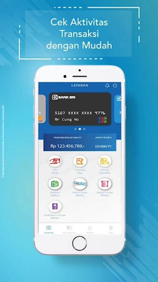 PT Bank Rakyat Indonesia (Persero) Tbk presents BRI Credit Card Mobile Apps, which makes you get fast, practical and easy services in using banking services. You can check your BRI Credit Card transactions or bills via a smartphone.