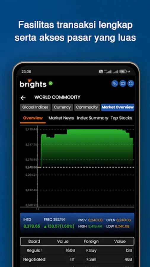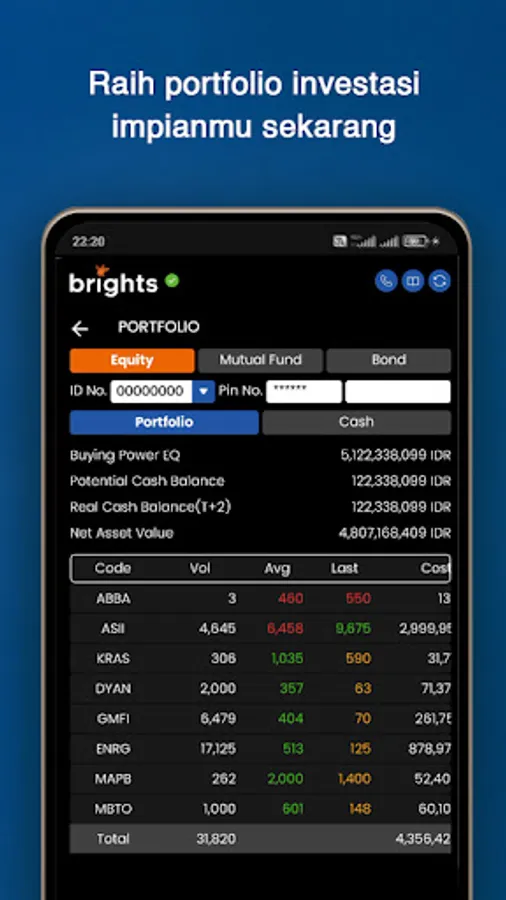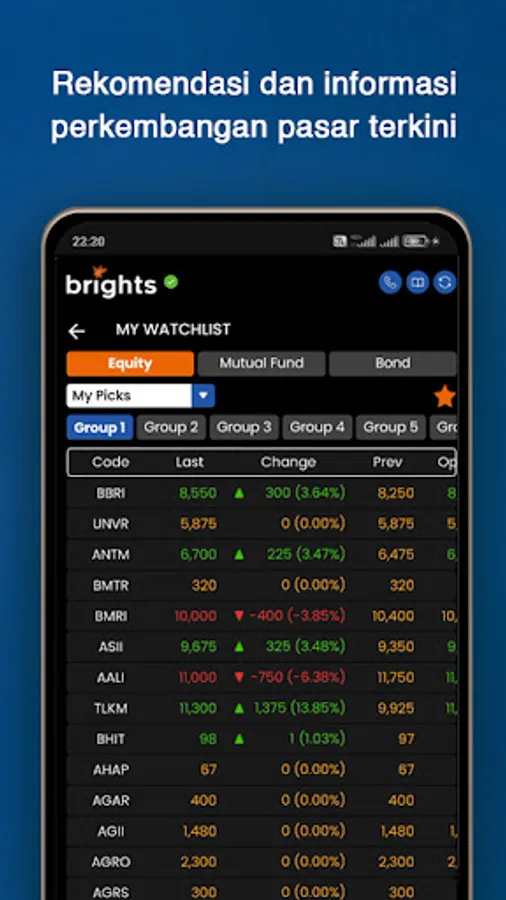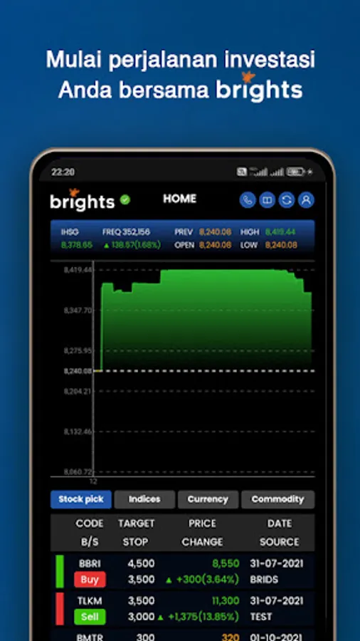 BRIGHTS is an application that provides real-time information about stock price or index movements which is connected directly with the IDX, your account information and also transactional activity. Simply download BRIGHTS and start trading anywhere anytime.