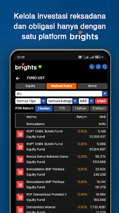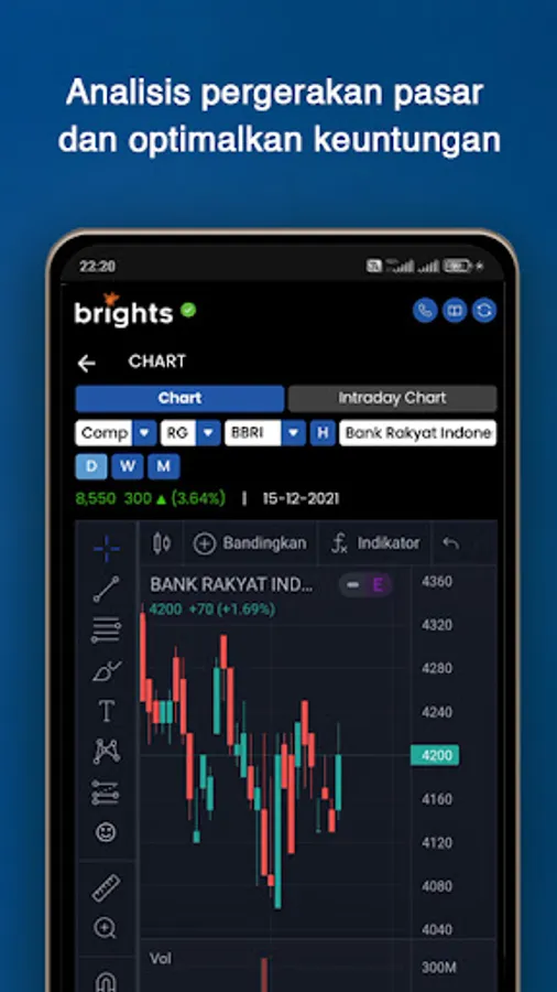 Sophisticated investment trading platform – the only platform in Indonesia which allow the trading of stocks, bonds, and mutual fund for simply one account. Even better, BRIGHTS is equipped with the most comprehensive and sophisticated trading indicators, which features of real time charting, customizable indicators, and various technical analysis.