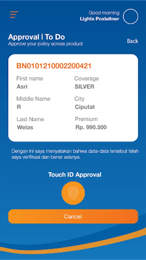 BRINESIA Cabang merupakan aplikasi yang digunakan oleh pimpinan cabang untuk melakukan penandatanganan polis menggunakan verifikasi berupa sistem keamanan yang didukung oleh device.