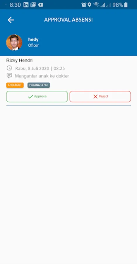 e. Approval attendance for supervision from smartphone