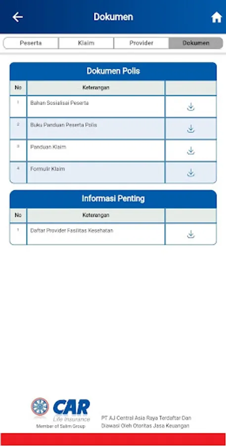 Filled with policy documents that can be downloaded by participants