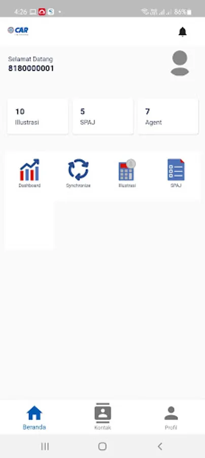 Application managed by CAR Life Insurance to provide services to marketers through API to provide convenience in several services such as: