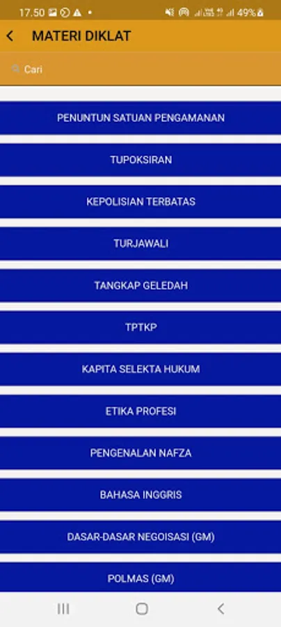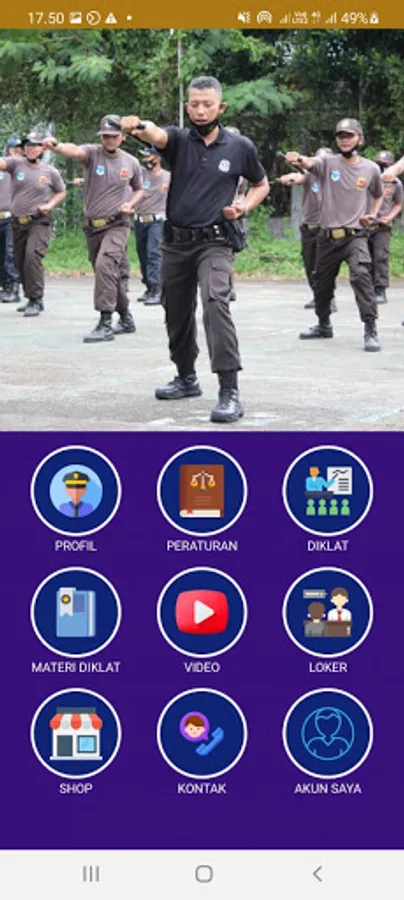 Application that contains regulations related to security guards, material Gada Pratama, Intermediate Gada, Main Gada, Security Locker and other useful information