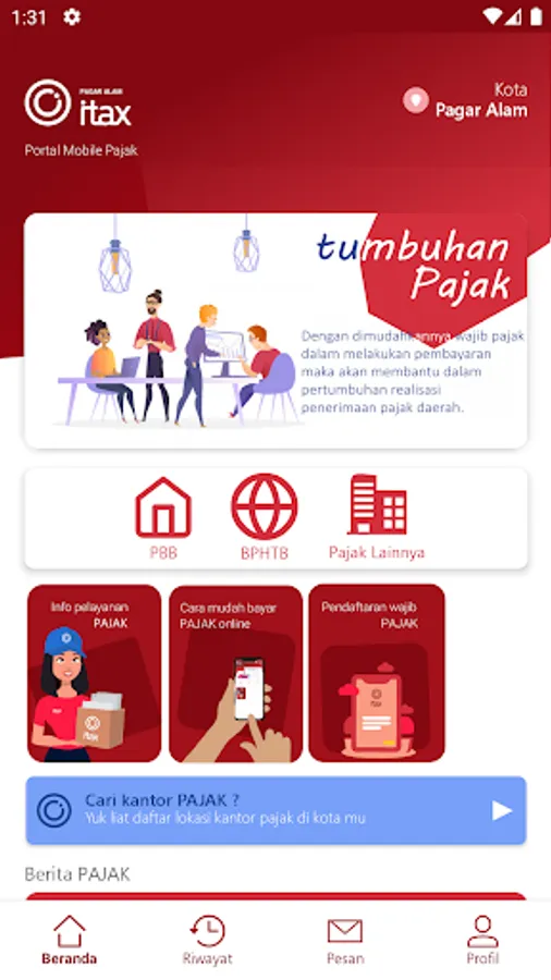 ITAX eSTPD is an online-based application that can be used with the aim of assisting taxpayers in performing services, checking and paying PAD online. With this application, taxpayers don't need to come to the office but can register and perform services online.