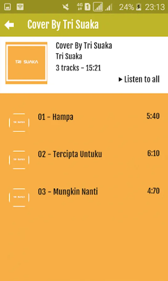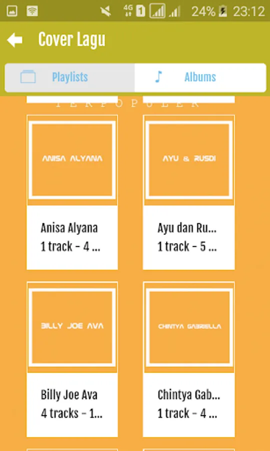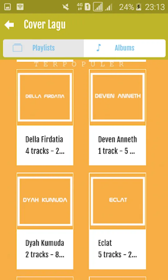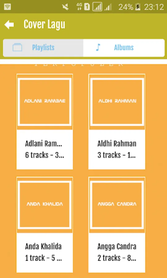 Playlists in this application is composed alphabetically the name of the singer that covers a variety of songs that are trending in Indonesia,