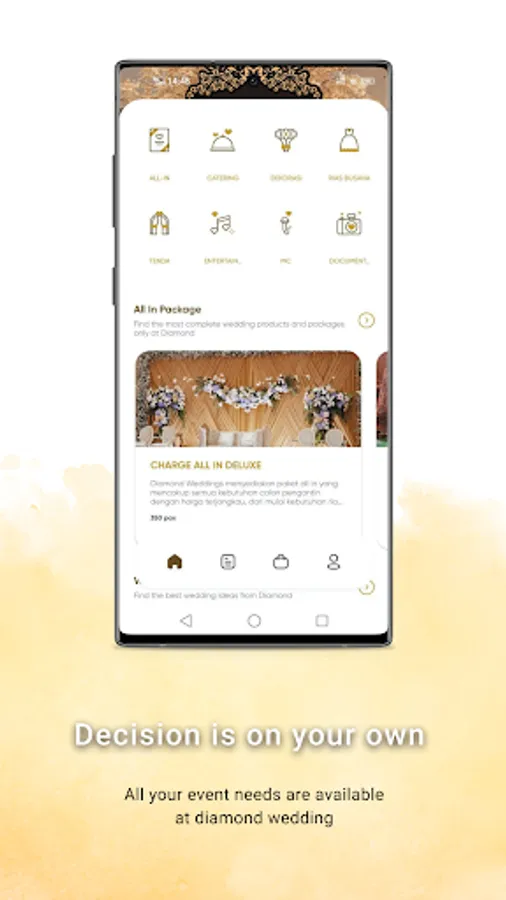Diamond Weddings adalah perusahaan yang sudah berdiri sejak tahun 1991, yang bergerak dibidang "One Stop Wedding Service", dimana seluruh kebutuhan para calon pengantin untuk hari pernikahannya, kami sediakan secara lengkap disini.