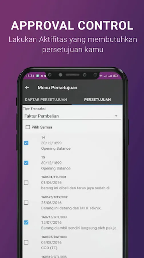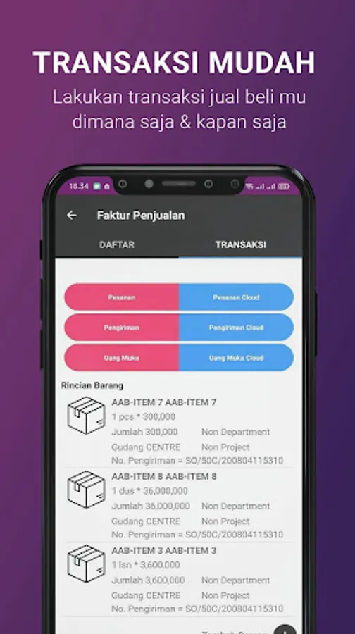 A complete mobile transaction application with buying and selling transaction modules, dashboards, financial reports to approval control for transaction activities that require your approval.