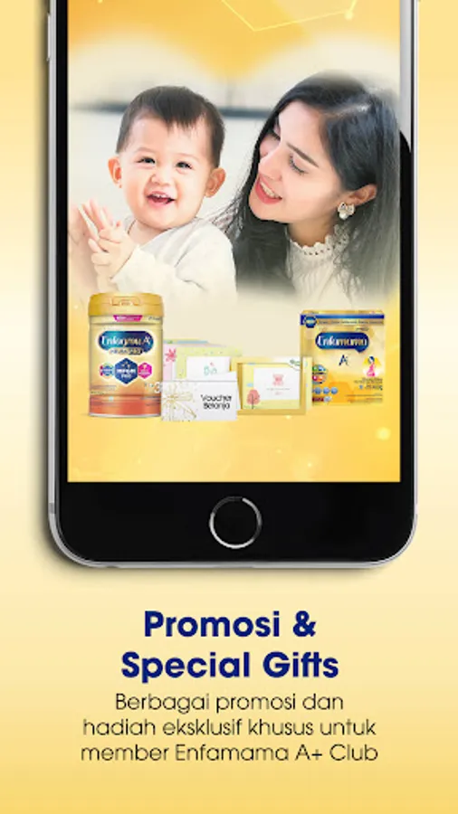 Various promotions and exclusive prizes for Enfamama A+ Club members. You can also request a free sample game (if applicable).