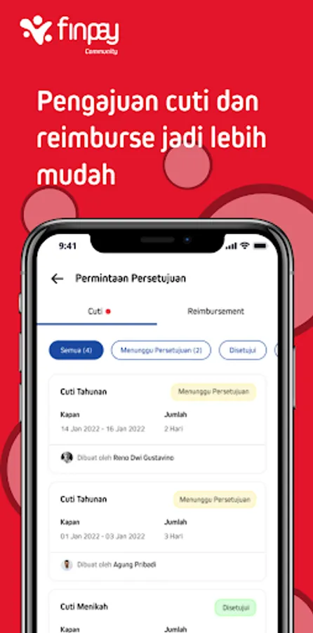 Manage members with HR features. Not only community, Finpay Community can also be used for your company! Finpay Community provides features for recording attendance, leave, reimbursement, and payroll to help manage your members. Equipped with a dashboard for easy setup.