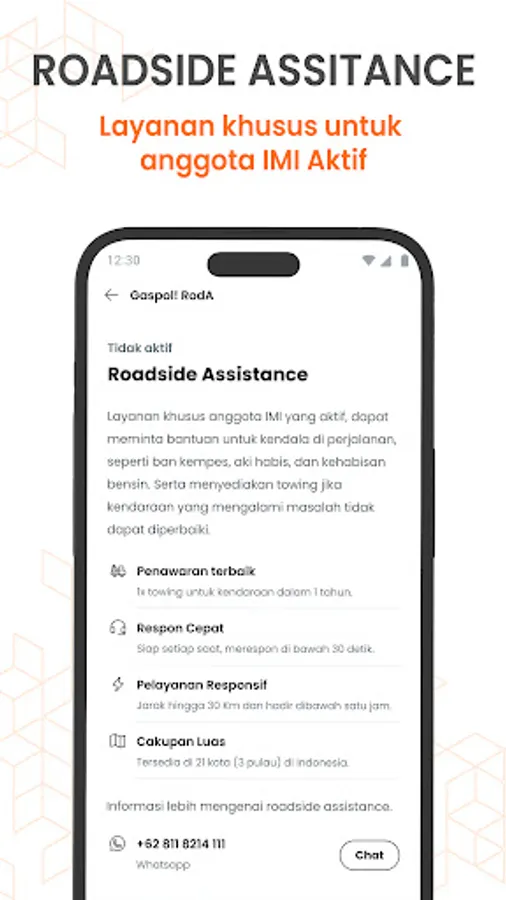 Memperkenalkan Gaspol! RodA – Emergency Roadside Assistance, dikembangkan secara eksklusif untuk membantu anggota IMI jika kendaraan mereka mengalami masalah di jalan, seperti layanan untuk ban kempes, kehabisan bensin, masalah mesin dan juga menderek jika mobil atau motor mogok di jalan. Gaspol! RodA menawarkan biaya yang jauh lebih rendah dengan layanan lengkap, siap 24/7, di 3 pulau, 21 kota, melayani hingga 30 Km, dan waktu penjemputan maksimal 1 jam.
