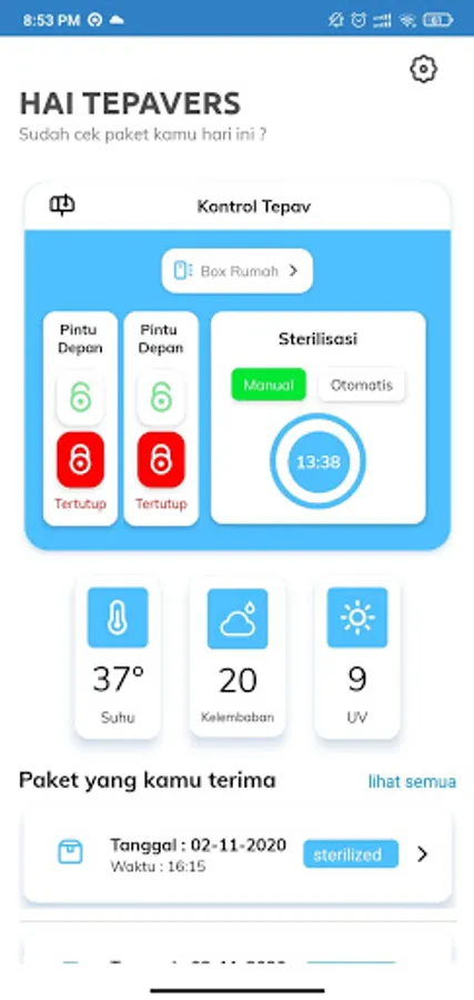 Tepav is an application for managing tools in the form of the Internet of Things (IoT) which is the Receiving Place for Anti-Virus Packages. The IoT tool is managed via a smartphone through this application