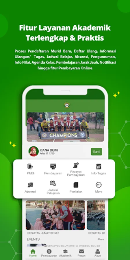 Various educational service features ranging from new student registration features, student re-registration processes, test/assignment information, study schedules, attendance, announcements, class agendas, online payments can be used by all registered communities.