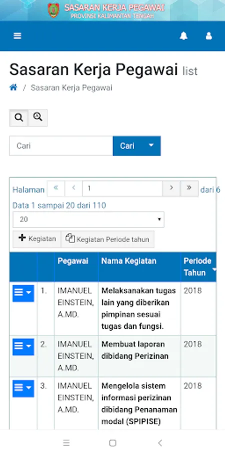 Employee Work Target at the Central Kalimantan Investment and One-Stop Service Office in Central Kalimantan