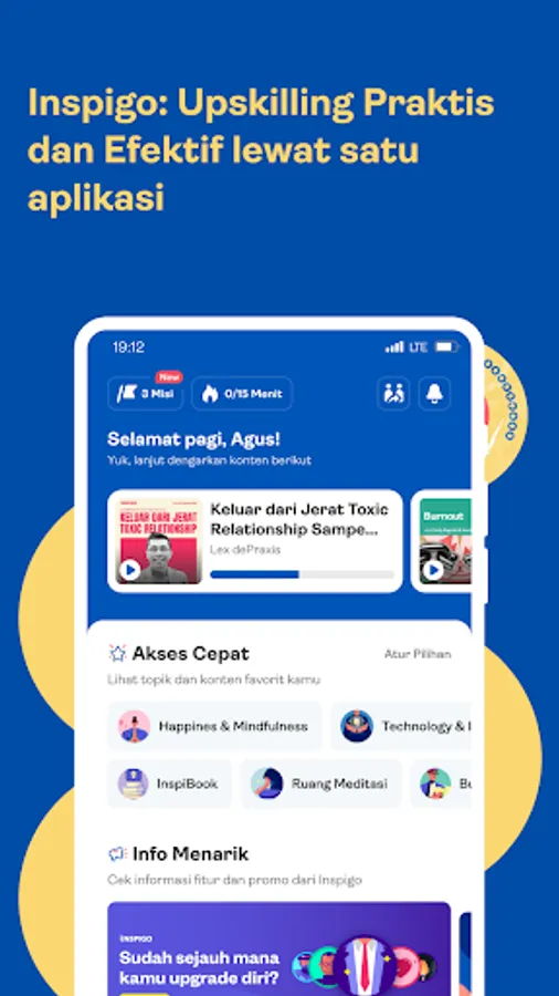Make your day more productive with a practical, solid, and continuous learning experience with Inspigo! Enjoy knowledge and inspirations from anywhere and anytime with learning content in bite-sized audio format. Inspigo is perfect for busy young professionals who are always eager to learn new things and inspirations from the top experts in the industry.