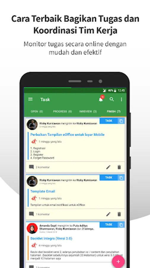 Overtime again? how come the job isn't finished it's been delayed for a long time, the meeting goes back and forth how come there's no result? Who is to blame ? It's time for you to ask why this is happening continuously in your company. IntegraOffice Task Management helps your team to collaborate optimally by reducing the bureaucratic chaos, all tasks can be accessed by all team members wherever they are from their respective smartphones, there are no more accusations, all personnel know the responsibilities and targets that must be achieved through the task dashboard complete and intuitive.