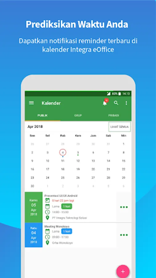 No more disappointed clients because you missed a meeting schedule, avoid headaches due to the hassle of arranging conflicting service schedules, IntegraOffice Schedule & Calendar will always help and remind you of meetings, meetings and other important agendas via e-mail and Direct Notification to Your smartphone. Public Calendar features for public office events, Group Calendar for client projects that you are handling, and also a Personal Calendar for your special event, making sorting out personal and work matters easy and practical.