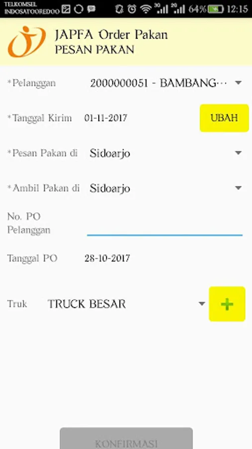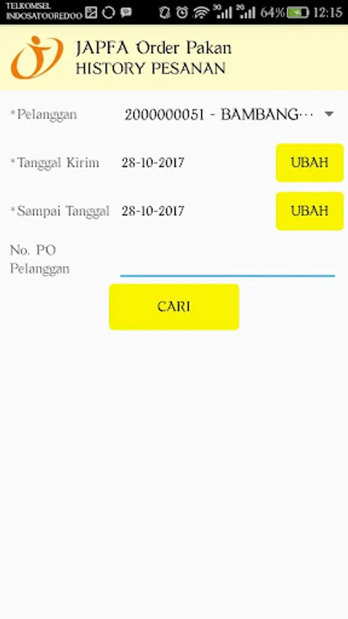 Aplikasi resmi Japfa untuk membantu customer / pelanggan untuk bisa melakukan order pakan di android.