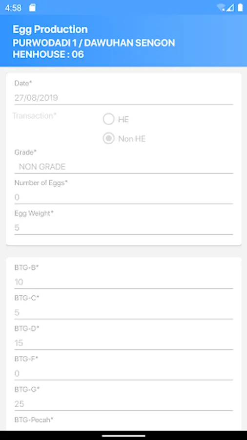 Aplikasi Android Poultry Recording untuk PT Japfa Comfeed Indonesia versi kedua