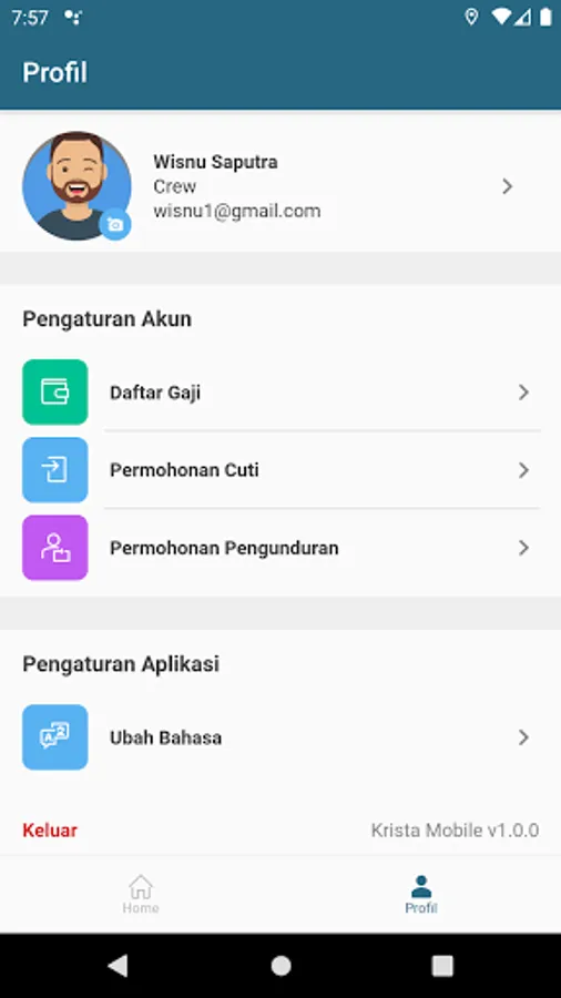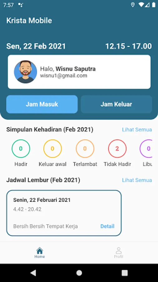 Krista Mobile is the exclusive property of PT Krista Karunia Agung, developed through special research according to the specific needs of the man power supply job.
