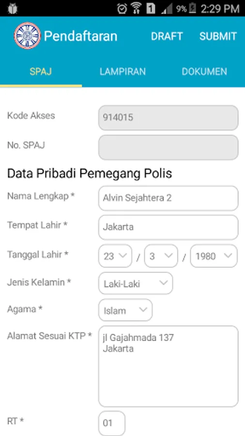 Aplikasi mobile untuk pengajuan surat permohonan asuransi jiwa