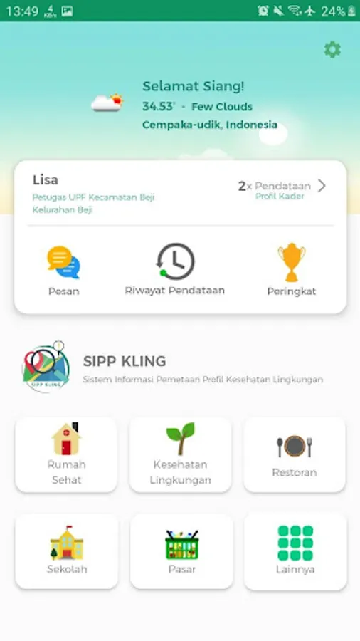 Application to collect data on environmental objects in order to get values for their health status and eligibility, which will then be mapped and managed so as to get Environmental Health Profile numbers in an area to encourage the fulfillment of government or public data needs and help realize the Smart Healthy City