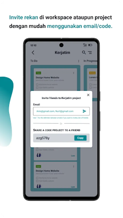 Buat dan kelola tugas anda bersama dengan rekan kerja anda. Dengan kerjatim anda dapat mengundang atau bergabung ke dalam tugas anda.