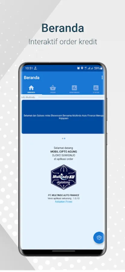 Multindo-ku Showroom adalah aplikasi yang disediakan oleh PT. MULTINDO AUTO FINANCE untuk Showroom yang sudah bekerja sama dan sudah diberikan akses. Aplikasi ini digunakan oleh mitra showroon untuk proses order kredit calon nasabah ke PT. MULTINDO AUTO FINANCE.