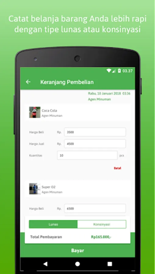 * Recording of purchase transactions are easy with the ability to barcode scanner (barcode scanner)