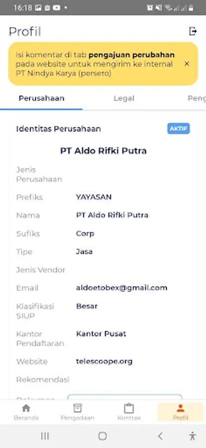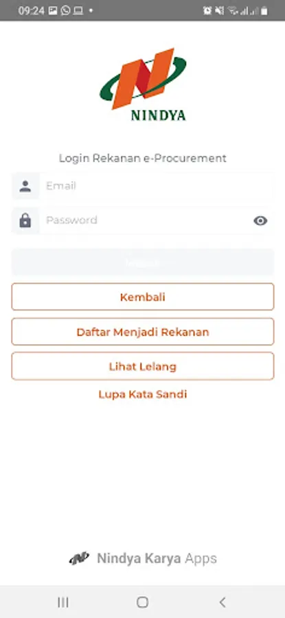 Aplikasi Eprocurement PT Nindya Karya merupakan Aplikasi untuk pengadaan PT Nindya Karya yang digunakan untuk seluruh karyawan PT Nindya Karya yang berguna untuk memudahkan dalam system pendataan.